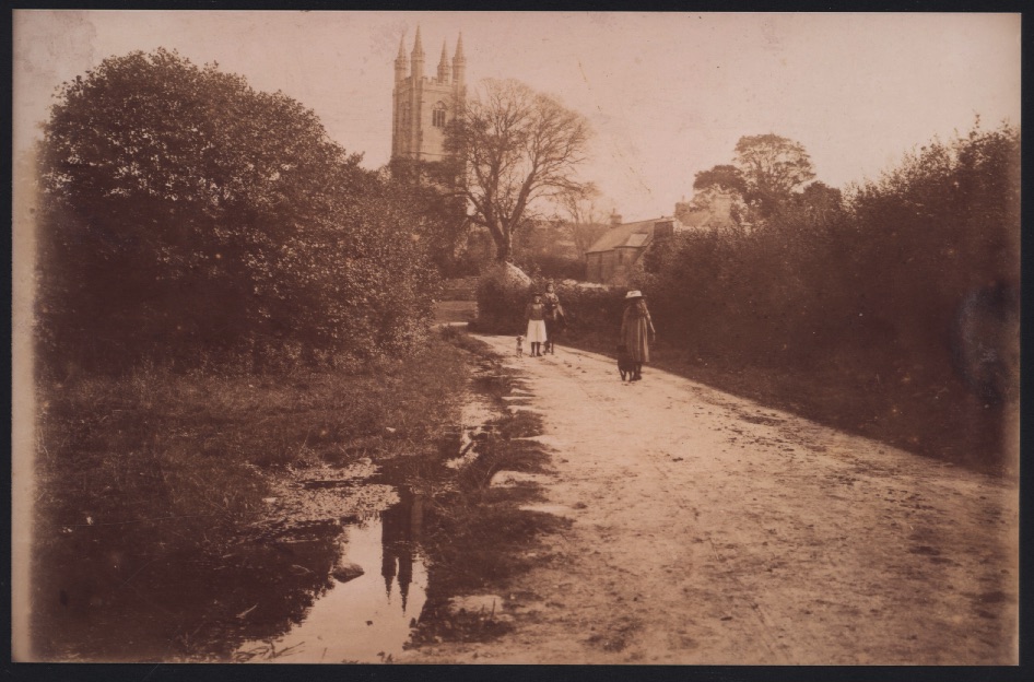 The photo on the left shows the Radcliffe girls with their pony and dogs walking along Brook Lane in Widecombe Village in 1903 and on the right Brook Lane as it is in 2017. Note the buildings in the foreground in 2017 have mostly been erected since 1903 and the stream on the left has been redirected out of view. Perhaps the most interesting part of the photo is the large tree in front of the church, which is recognisably the same shape today and with some very closely matching limbs. So, it was mature in 1903 and it is still going strong.