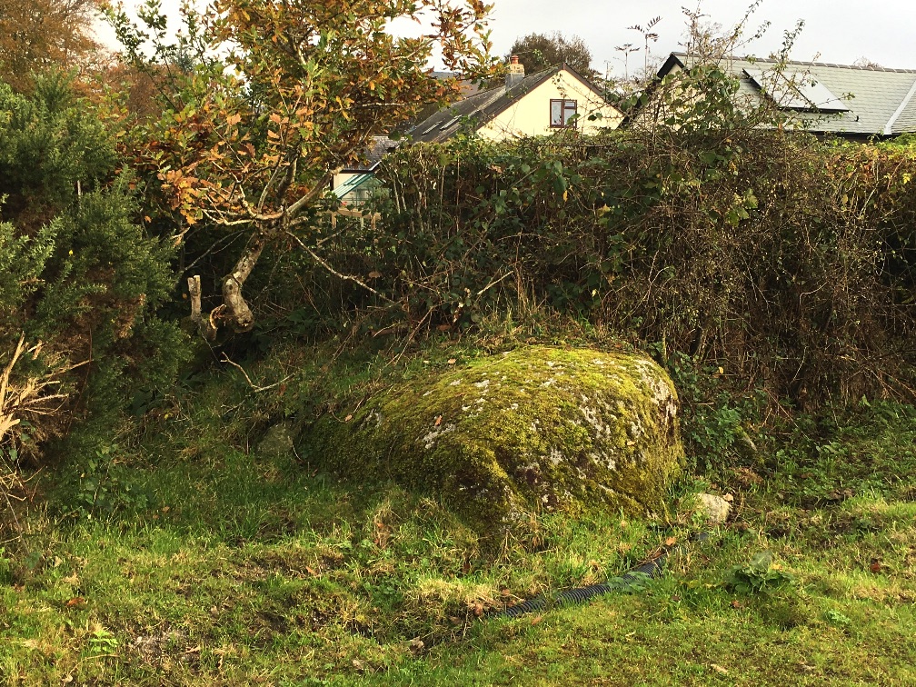 The Hennafoot or Hinds Foot Stone, like the Rugglestone, is a manor boundary stone, marking the boundary between Blackslade Manor and Widecombe Town Manor. This stone is marked on Ordnance Survey maps, although its precise location on those maps is hard to determine. The stone appears to be located in the East Webburn and, according to the grid reference, in or close to the garden at Riverside, the home of one of our members. However, it is not there! So, the mystery is to work out what has happened to it or if it is really located somewhere else. Watch this space! Update: we now believe the photograph shows what is left of the clapper bridge that crosses the East Webburn and is shown on the Ordnance Survey map of 1885, and not the boundary stone, which we think is in the field to the south of Riverside. We will investigate this further to precisely locate it - see below for a further update.