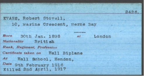 Spitchwick Manor & Cape Town 1914: Rod Kruger The Heritage Portal. Sopwith Strutter, Albatross Aeroplanes and Sjt R S Evans: The Aerodrome. Fienvillers airfield: Archives Municipales de Fienvilliers. Bancourt Military Cemetery: CWGC. Leusdon tablet: David Ashman.
