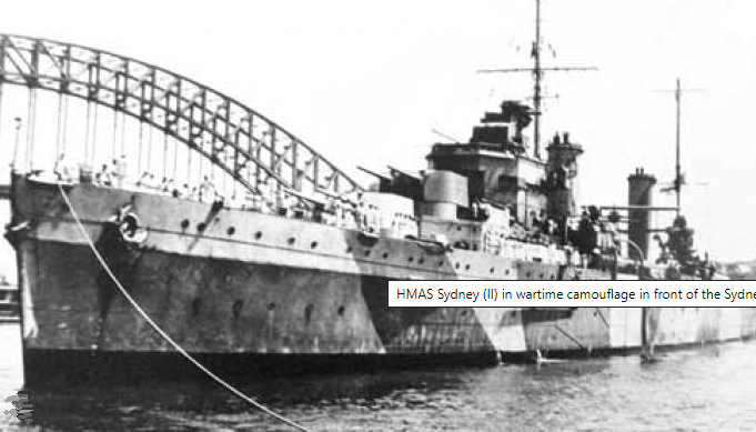 In November 1941 HMAS Sydney was patrolling the Indian Ocean off the coast of Freemantle in Western Australia when she engaged with a German surface raider Kormoran. In the battle that ensued, both vessels received so much damage that they sank.
