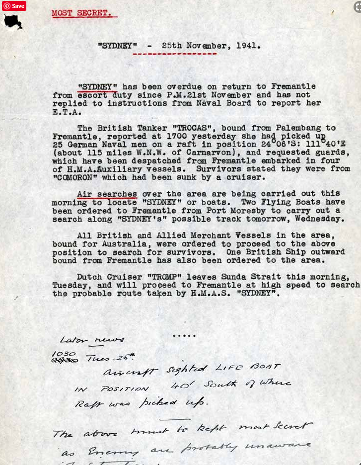 Cmdr John Norman Hilken was posted away from Sydney and left on 18th July 1941, almost exactly four months before HMAS Sydney was lost.